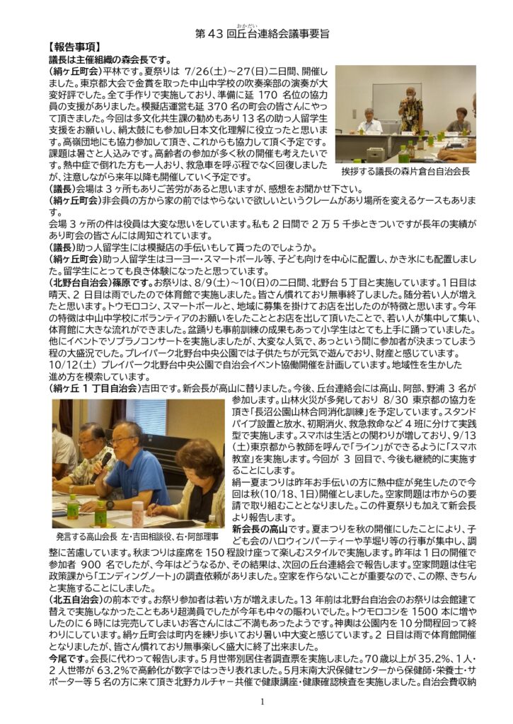 この日は、私たちの自治会から高山会長が初めて出席する他、引継ぎのため吉田相談役、阿部福祉厚生担当理事ら4人が出席しました。また、八王子市から真辺市民活動推進部長が出席し挨拶されました。