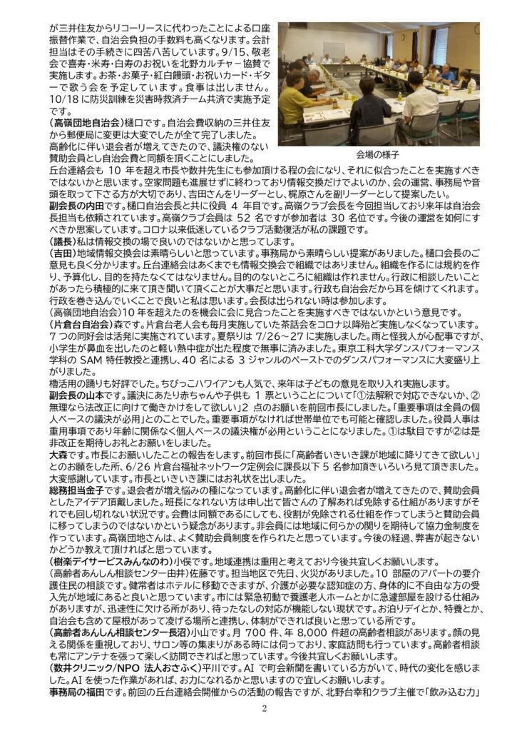 丘台連絡会が、8月21日(木)10時から、片倉台自治会館で行われました。