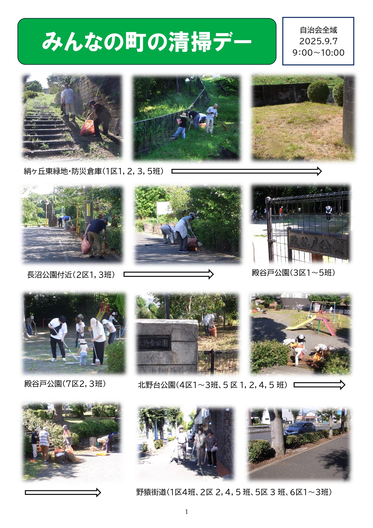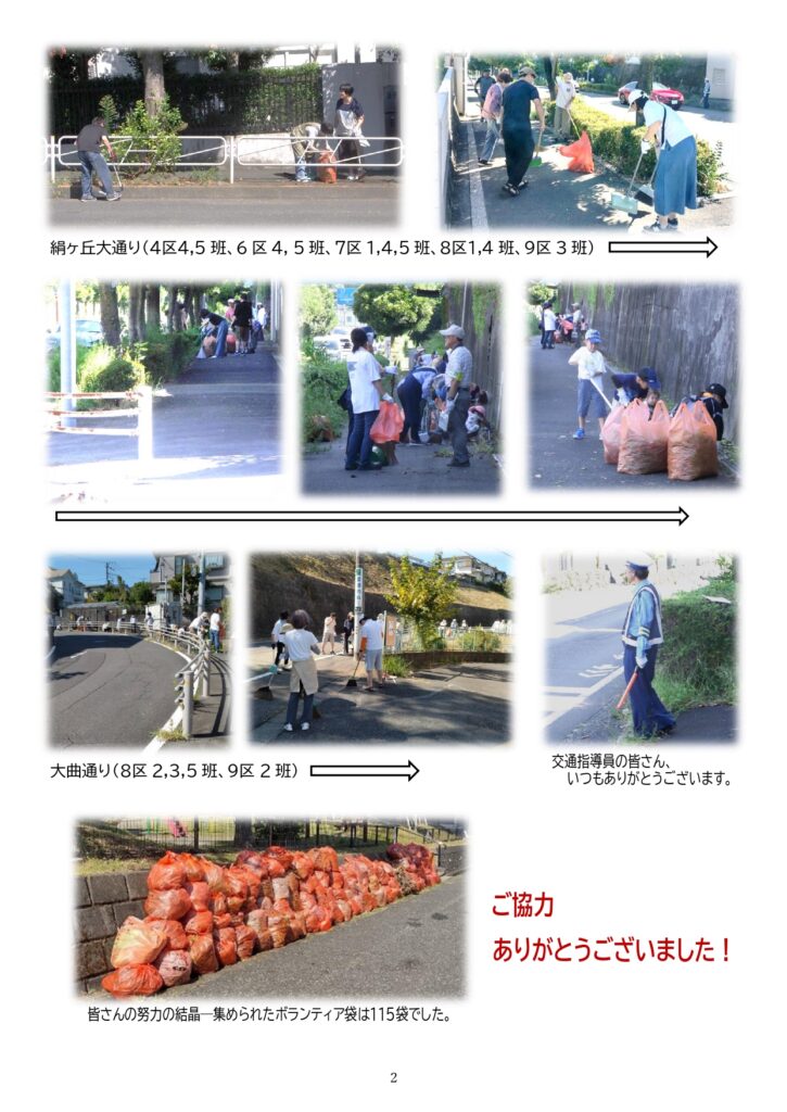 9月7日(日)に令和7年度「みんなの町の清掃デー」が行われました。協力していただいた参加者は、210人でお子さんも見受けられました。集められたボランティア袋は、115袋でした。9月になっても暑い日が続いて、この日も朝から気温が上昇、熱中症が心配されましたが、無事、清掃は終了しました。皆様のご協力、ありがとうございました。