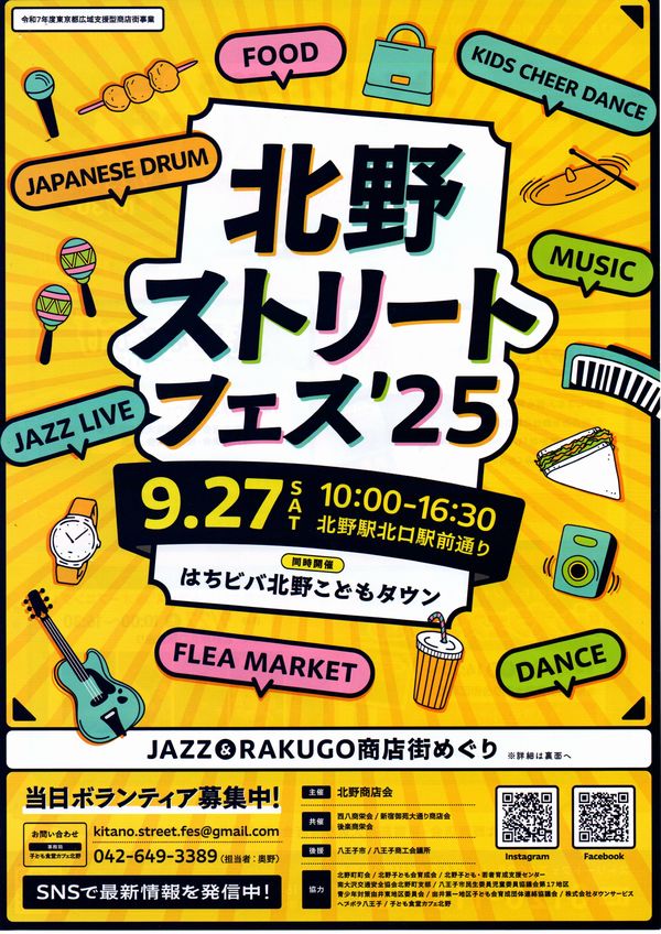 9月27日(土)、「北野ストリートフェス’25」が行われます。いろいろな催し物が用意されています。地元商店街を応援しましょう!