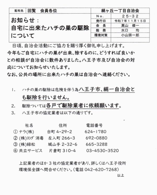 「家の軒下にハチの巣ができた。スズメバチの巣?」ハチの巣の処置には頭を悩ませます。ハチの巣の駆除は、八王子市が指定した業者が対応してくれます。その他、ハチの相談事は、市役所環境保全課が対応してくれます。