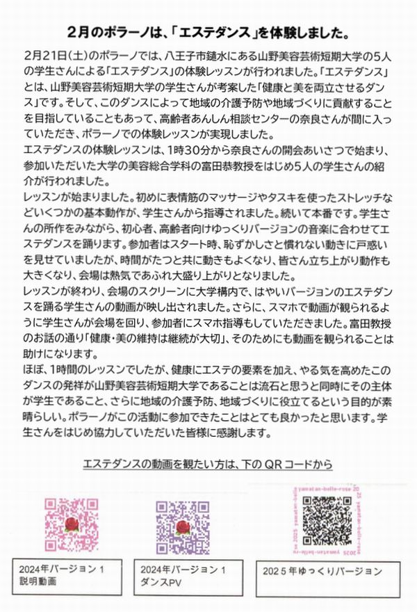 2月21日のポラーノは、「エステダンス」を体験しました。