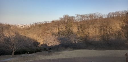 1月の西尾根に向かう橋の上からの公園の木々